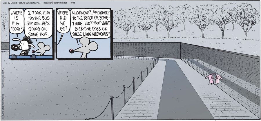 May 26, 2014 by Michael A. Ventrella Memorial Day For Memorial Day, I thought I’d just post some cartoons, and remind everyone to always remember the true purpose of the day. Share this Click to share on Facebook (Opens in new window) Facebook Click to share on Tumblr (Opens in new window) Tumblr Click to share on Bluesky (Opens in new window) Bluesky Click to share on Reddit (Opens in new window) Reddit Click to share on WhatsApp (Opens in new window) WhatsApp Click to share on LinkedIn (Opens in new window) LinkedIn Click to share on Pinterest (Opens in new window) Pinterest Click to email a link to a friend (Opens in new window) Email Click to print (Opens in new window) Print Like Loading... Related