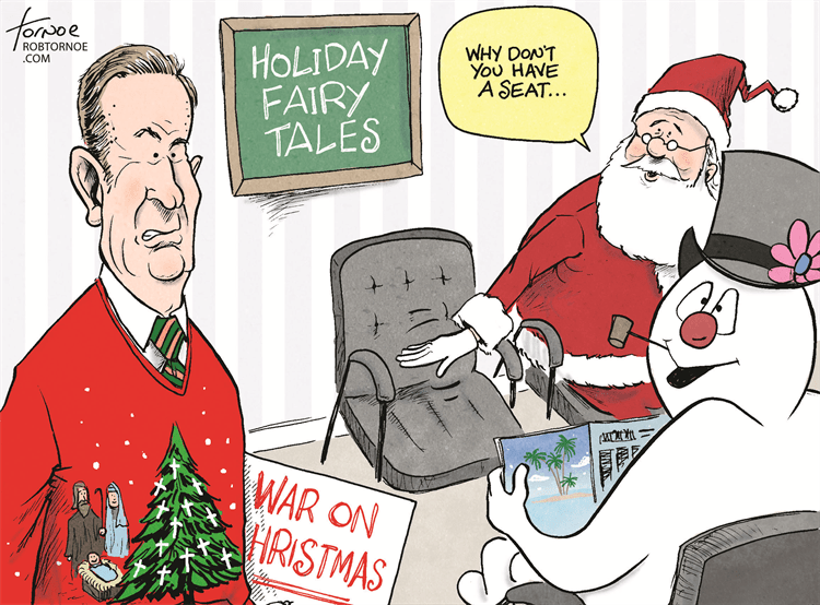 Or else they’ll point out one misguided grinch who complains about a decoration or something as if that was evidence of a vast, coordinated attack. Last year, they trotted out an elementary school principal who, in an effort to avoid controversy, banned even secular representations of Christmas such as Santa Claus and Christmas trees. She changed her position once people complained, but that was hardly a “war on Christmas” as much as it was someone who understood that religion does not belong in a public school but mistakenly went too far.