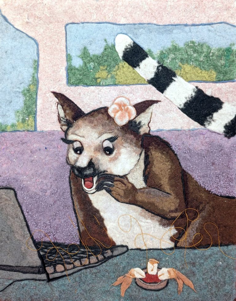 This is one of her art pieces. It’s made out of dryer lint. No, really. Check out her web page.