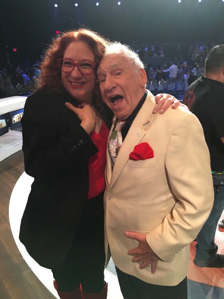 Here she is with Mel Brooks on the “To Tell The Truth” set